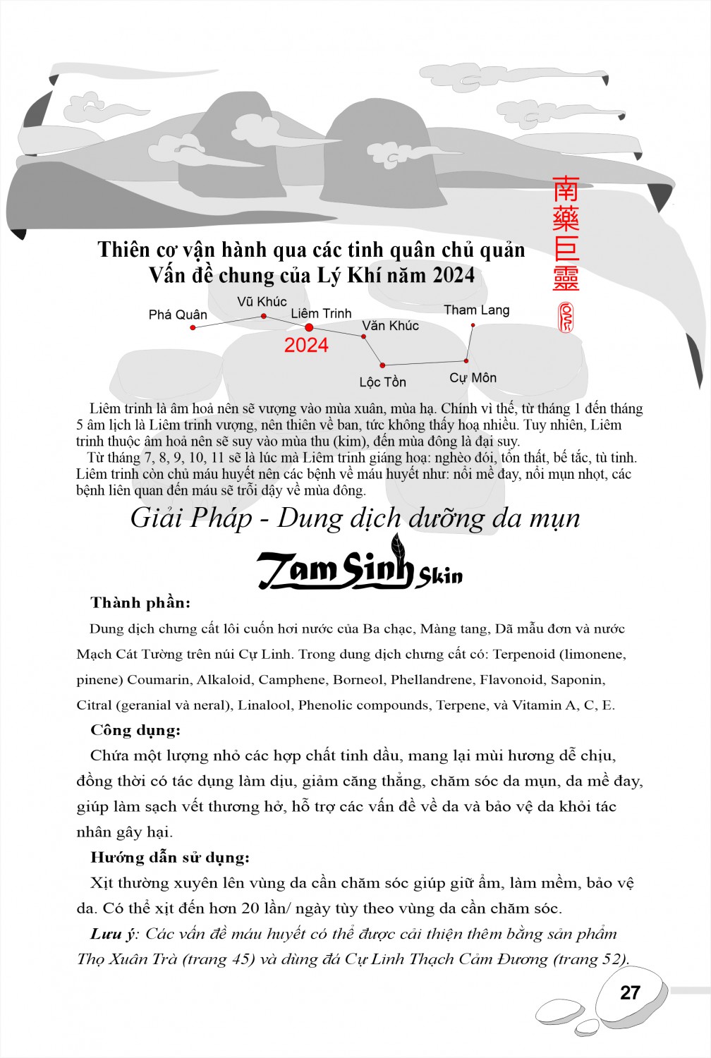 Lưu ý: Các vấn đề máu huyết có thể được cải thiện thêm bằng sản phẩm Thọ Xuân Trà (trang 45) và dùng đá Cự Linh Thạch Cảm Dương (trang 52).